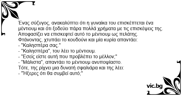 - "Μάλιστα", απαντάει το μέντιουμ ανυποψίαστο.