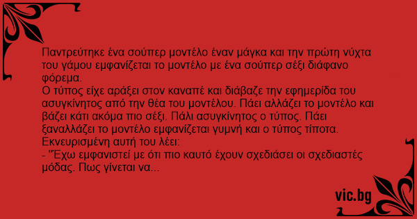 Παντρεύτηκε ένα σούπερ μοντέλο έναν μάγκα και την πρώτη νύχτα του γάμου εμφανίζεται το μοντέλο με ένα σούπερ σέξι διάφανο φόρεμα.