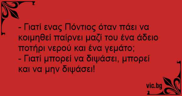 - Γιατί ενας Πόντιος όταν πάει να κοιμηθεί παίρνει μαζί του ένα άδειο ποτήρι νερού και ένα γεμάτο;