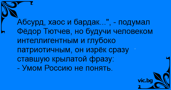 Абсурд, хаос и бардак...", - подумал Фёдор Тютчев, но будучи человеком интеллигентным и глубоко патриотичным, он изрёк сразу ставшую крылатой фразу: