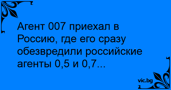 Агент 007 приехал в Россию, где его сразу обезвредили российские агенты 0,5 и 0,7...