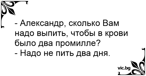 - Александр, сколько Вам надо выпить, чтобы в крови было два промилле?