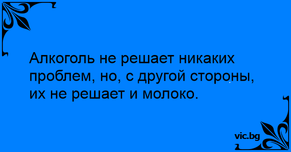 Алкоголь не решает никаких проблем, но, с другой стороны, их не решает и молоко.