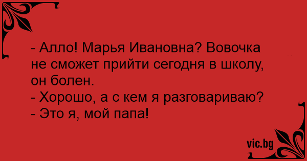 — Алло! Маріє Іванівно? Вовочка не зможе прийти сьогодні до школи, він хворий.