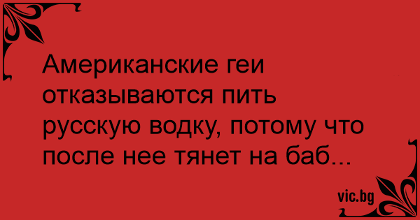 Американские геи отказываются пить русскую водку, потому что после нее тянет на баб...