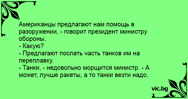 - Танки, - недовольно морщится министр. - А может, лучше ракеты, а то танки везти надо.