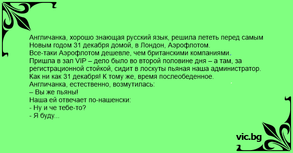 Англичанка, хорошо знающая русский язык, решила лететь перед самым Новым годом 31 декабря домой, в Лондон, Аэрофлотом.