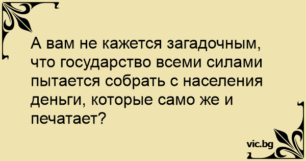 А вам не кажется загадочным, что государство всеми силами пытается собрать с населения деньги, которые само же и печатает?