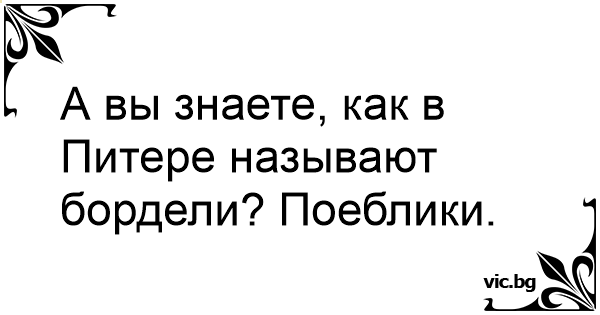 А вы знаете, как в Питере называют бордели? Поеблики.