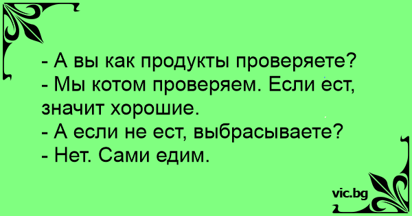 - Мы котом проверяем. Если ест, значит хорошие.
