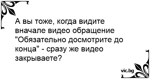 А вы тоже, когда видите вначале видео обращение "Обязательно досмотрите до конца" - сразу же видео закрываете?