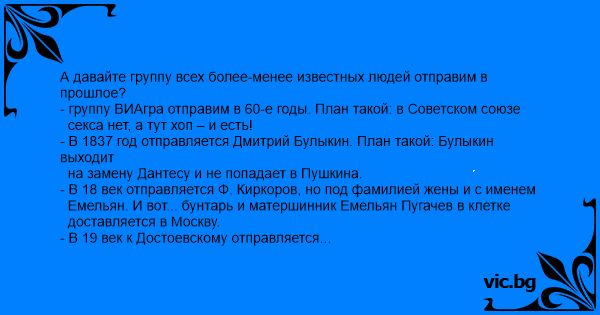 А давайте группу всех более-менее известных людей отправим в прошлое?