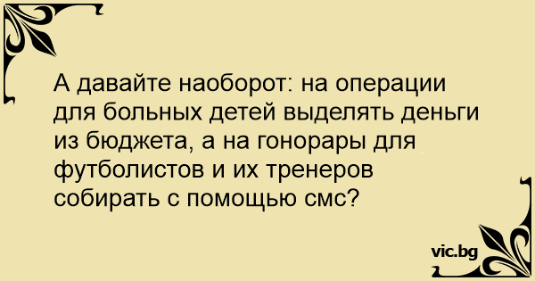 А давайте наоборот: на операции для больных детей выделять деньги из бюджета, а на гонорары для футболистов и их тренеров собирать с помощью смс?