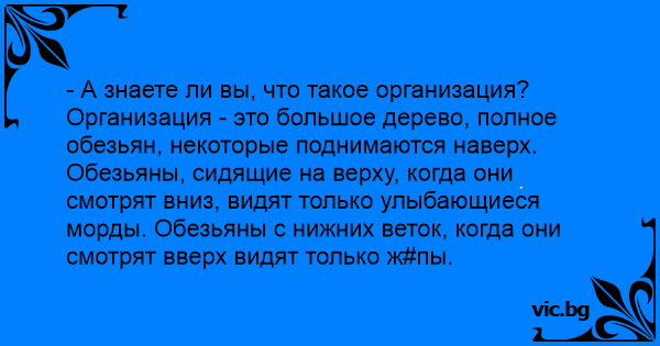 Организация - это большое дерево, полное обезьян, некоторые поднимаются наверх.
