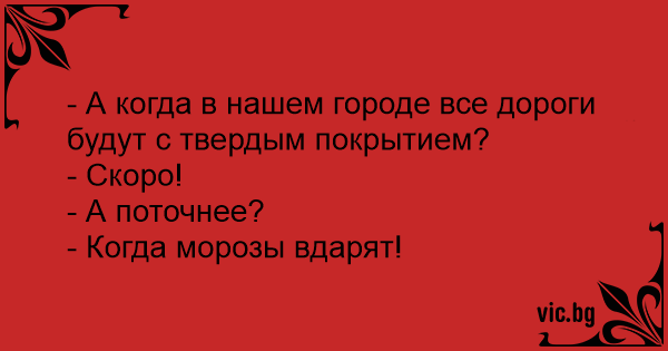 - А когда в нашем городе все дороги будут с твердым покрытием?