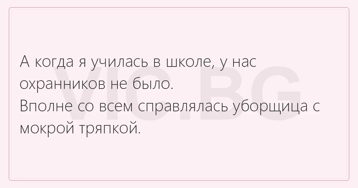 А когда я училась в школе, у нас охранников не было.