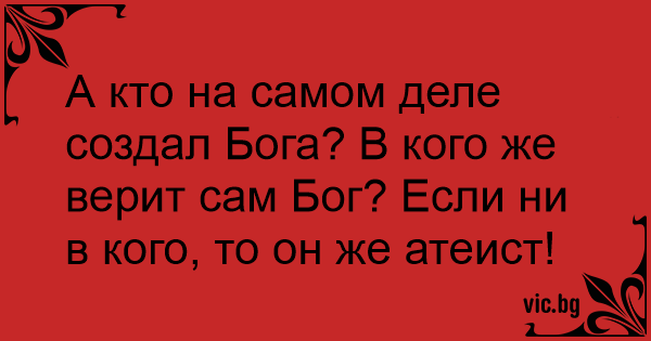 А кто на самом деле создал Бога? В кого же верит сам Бог? Если ни в кого, то он же атеист!
