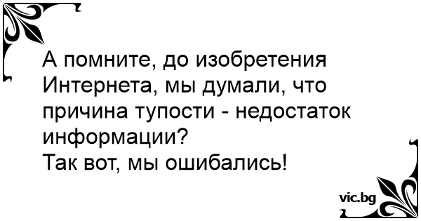 А помните, до изобретения Интернета, мы думали, что причина тупости - недостаток информации?