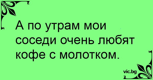 А по утрам мои соседи очень любят кофе с молотком.