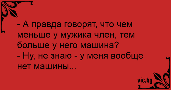 - А правда говорят, что чем меньше у мужика члeн, тем больше у него машина?
