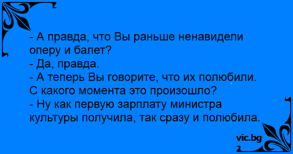 - Ну как первую зарплату министра культуры получила, так сразу и полюбила.