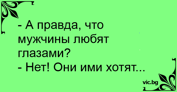 - А правда, что мужчины любят глазами?<br />- Нет! Они ими хотят...