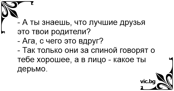 - А ты знаешь, что лучшие друзья это твои родители?