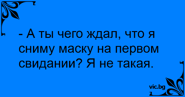 - А ты чего ждал, что я сниму маску на первом свидании? Я не такая.