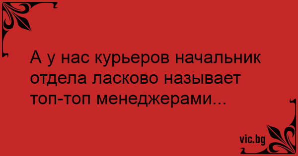 А у нас курьеров начальник отдела ласково называет топ-топ менеджерами...