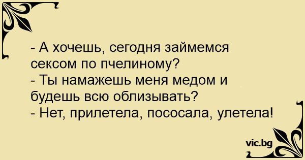 муж жене: - сегодня будем заниматься сексом по-пчелиному. - это...