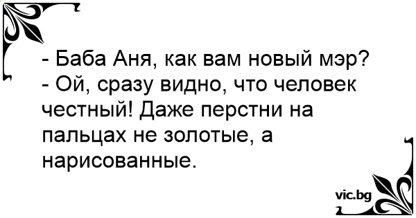 - Ой, сразу видно, что человек честный! Даже перстни на пальцах не золотые, а нарисованные.