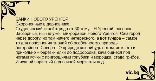 Ухнули, вытянули. Сели курить. Вот тут-то мужик и рассказал уренгойскую байку, ибо – было «по теме».