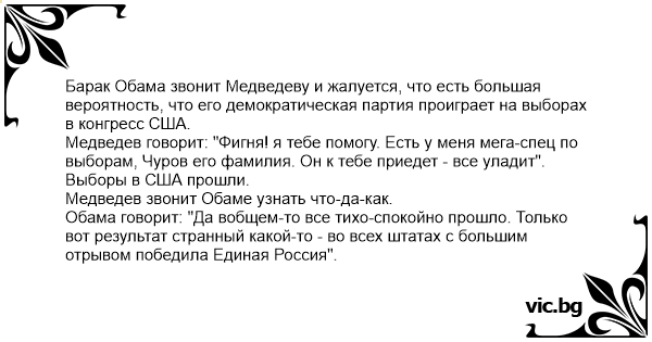 Барак Обама звонит Медведеву и жалуется, что есть большая вероятность, что его демократическая партия проиграет на выборах в конгресс США.