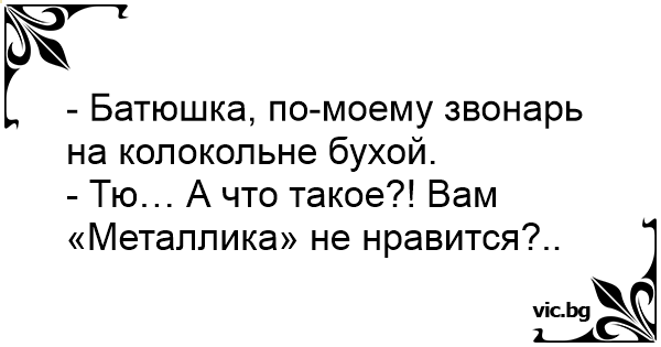 - Батюшка, по-моему звонарь на колокольне бухой.