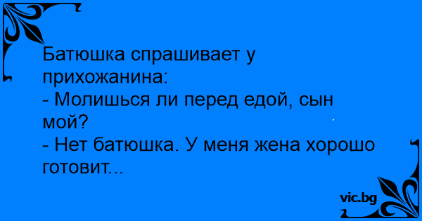 - Нет батюшка. У меня жена хорошо готовит...