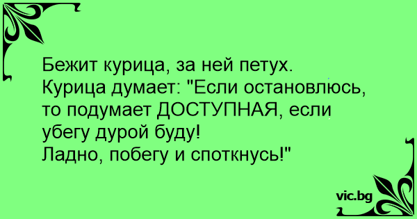 Курица думает: "Если остановлюсь, то подумает ДОСТУПНАЯ, если убегу дурой буду!