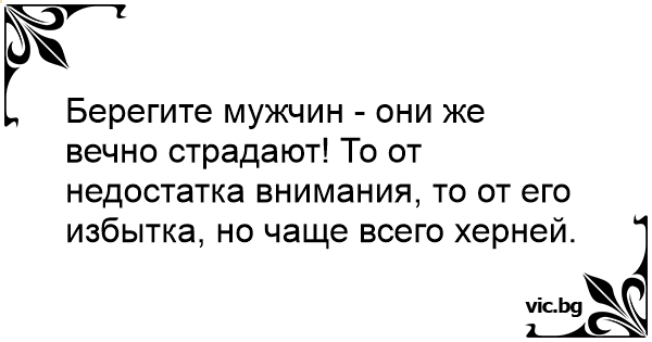 Берегите мужчин - они же вечно страдают! То от недостатка внимания, то от его избытка, но чаще всего херней.