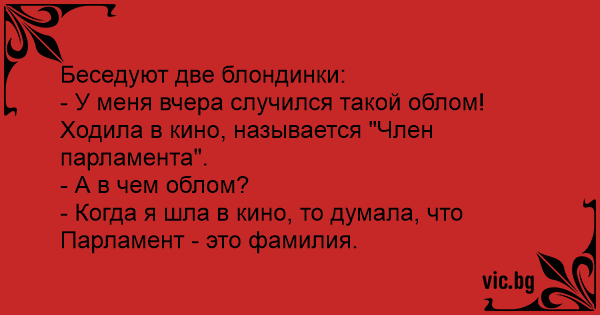 - У меня вчера случился такой облом! Ходила в кино, называется "Члeн парламента".