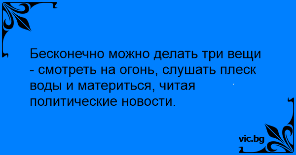 Бесконечно можно делать три вещи - смотреть на огонь, слушать плеск воды и материться, читая политические новости.