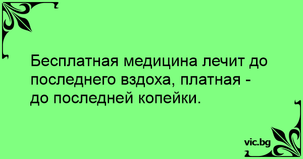 Бесплатная медицина лечит до последнего вздоха, платная - до последней копейки.