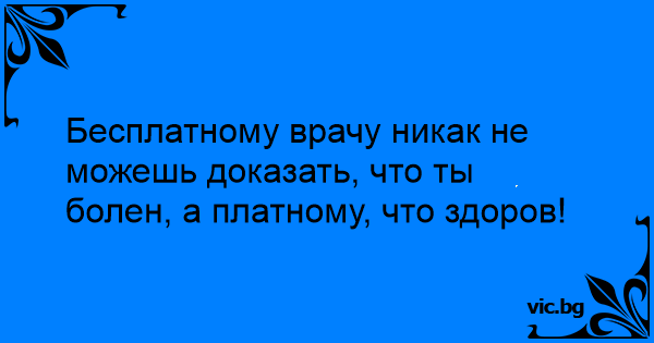 Бесплатному врачу никак не можешь доказать, что ты болен, а платному, что здоров!