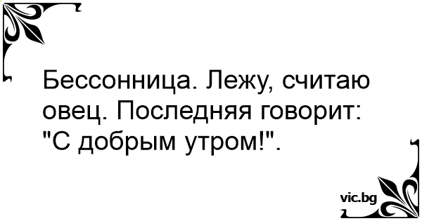 Бессонница. Лежу, считаю овец. Последняя говорит: "С добрым утром!".