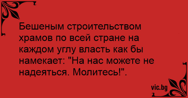 Бешеным строительством храмов по всей стране на каждом углу власть как бы намекает: "На нас можете не надеяться. Молитесь!".
