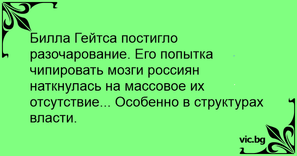 Билла Гейтса постигло разочарование. Его попытка чипировать мозги россиян наткнулась на массовое их отсутствие... Особенно в структурах власти.