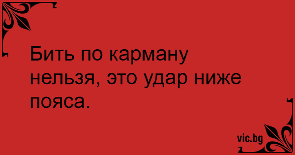 Бить по карману нельзя, это...