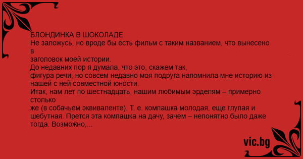 БЛОНДИНКА В ШОКОЛАДЕ Не заложусь, но вроде бы есть фильм с таким названием, что вынесено в заголовок моей истории.