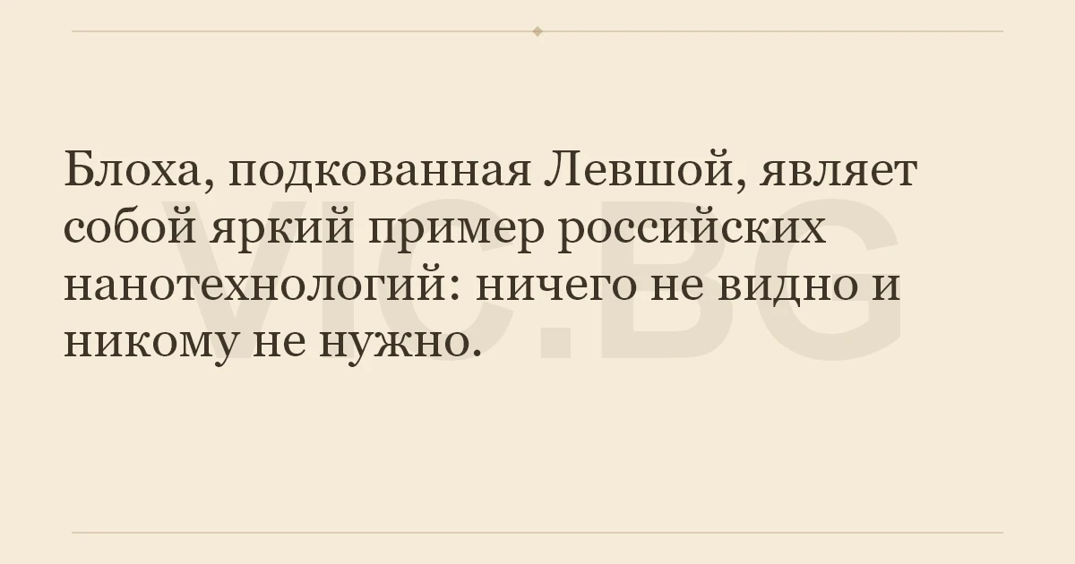 Блоха, подкованная Левшой, являет собой яркий пример российских нанотехнологий: ничего не видно и никому не нужно.