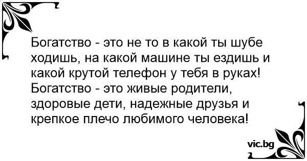 Богатство - это живые родители, здоровые дети, надежные друзья и крепкое плечо любимого человека!