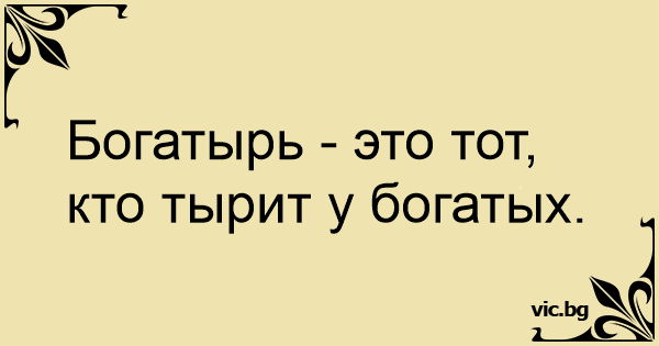 Богатырь - это тот, кто тырит у богатых.