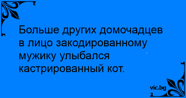 Больше других домочадцев в лицо закодированному мужику улыбался кастрированный кот.